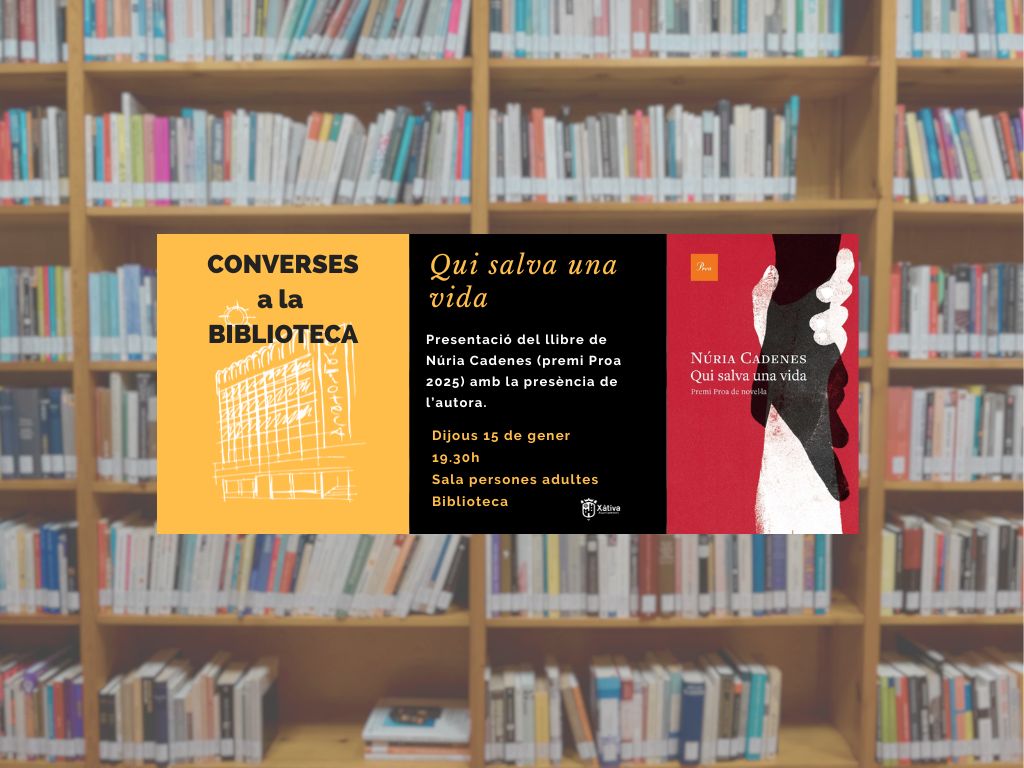 Converses a la biblioteca Dijous 15 de gener, presentació del llibre de Núria Cadenes: “Qui salva una vida”. A les 19.30h.